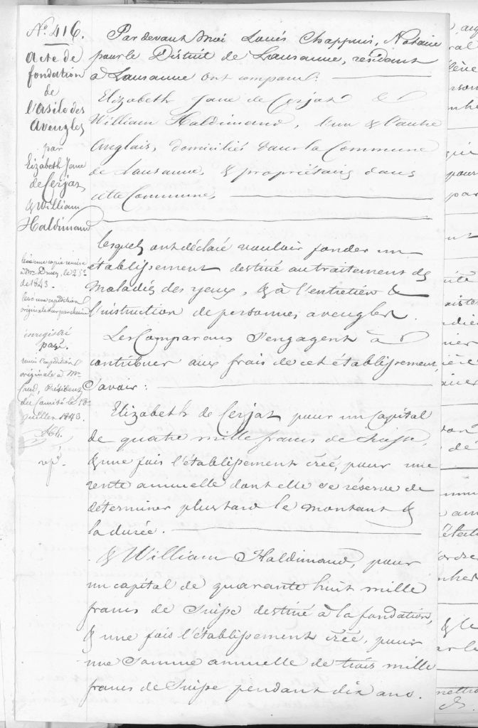 A l’époque, des omnibus à quatre chevaux montent péniblement d’Ouchy à Saint-François. La population lausannoise, qui compte aujourd’hui plus de 150’000 habitants, ne dépasse alors guère plus de 12’000 âmes… Durant cette période où la précarité s’intensifie dans le canton de Vaud, l’Asile des aveugles voit le jour le 3 janvier.